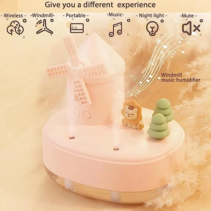 Windmill Humidifier Mini Desktop Cute Pet Humidifier Cool Mist Humidifier With Music Box And Night Light